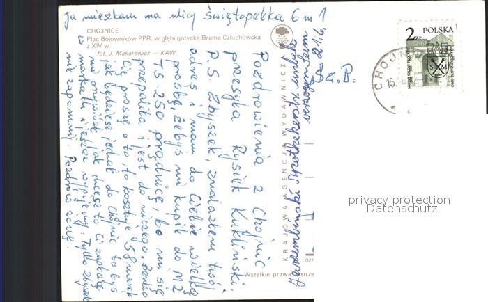 old postcard Chojnice Plac Bojownikow PPR Brama Czluchowska postalisch gelaufen Erhaltung siehe scans