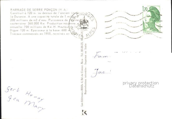 12456389 carte postale Chorges Barrage de Serre Poncon postalisch gelaufen Erhaltung siehe scans KatCode: 11170005205040
