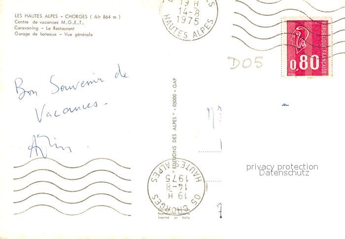 carte postale Chorges Centre de vacances M.G.E.T. Caravaning Restaurant Garage de bateaux vue Generale postalisch gelaufen Erhaltung siehe scans [FriedD77]