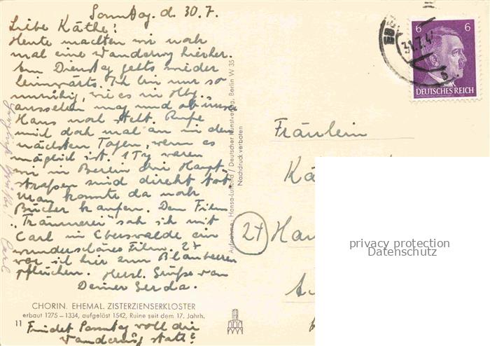 74010196 alte Postkarte Chorin Ehem Zisterzienserkloster Fliegeraufnahme postalisch gelaufen Erhaltung siehe scans [WerneD78] KatCode: 11110012060045