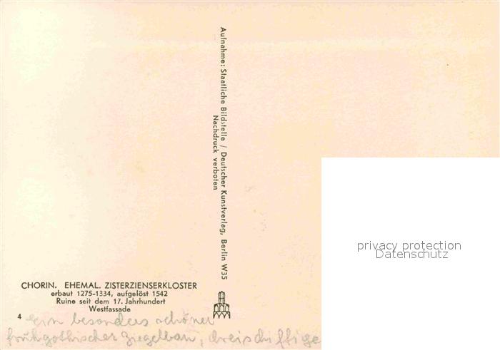 72702317 Chorin Ehemaliges Zisterzienserkloster 13. Jhdt. Ruine Westfassade postalisch nicht gelaufen Erhaltung siehe scans [FriedD77] KatCode: 11110012060045