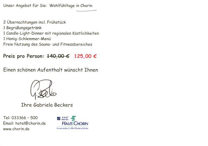 73904155 Chorin Hotel Haus Chorin postalisch nicht gelaufen Werbekarte (keine Postkarte) Erhaltung siehe scans [WerneD78] KatCode: 11110012060045