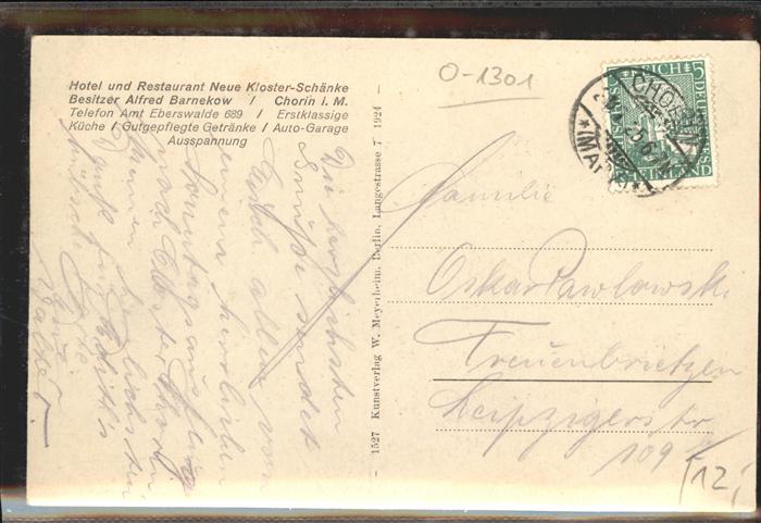 41404070 Chorin Hotel Restaurant Neue Klosterschänke KatCode 11110012060045