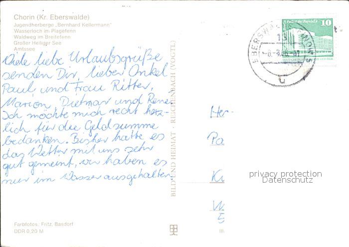 72393529 alte Postkarte Chorin Jugendherberge Bernhard Kellermann Wasserloch Plagefenn postalisch gelaufen Erhaltung siehe scans KatCode: 11110012060045