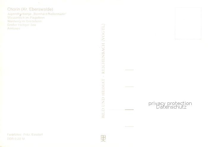 73061806 Chorin Jugendherberge Wasserloch Plagefenn Waldweg Breitefenn Grosser Heiliger See Amtssee postalisch nicht gelaufen Erhaltung siehe scans [FriedD77] KatCode: 11110012060045