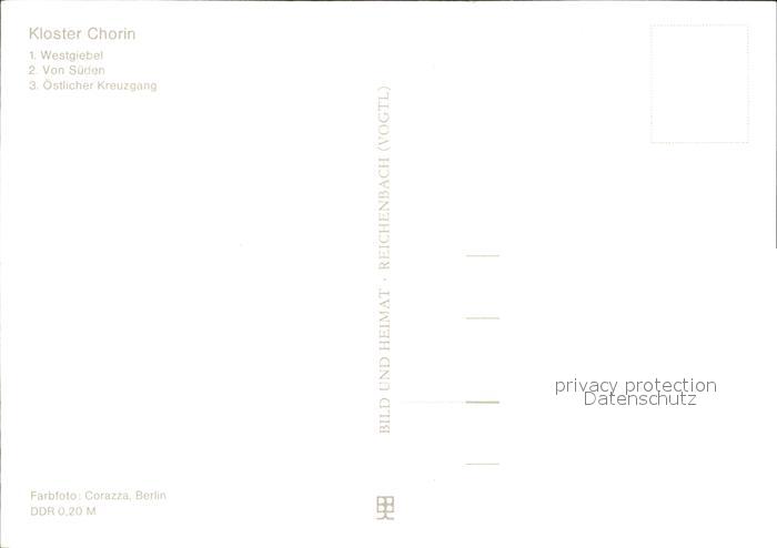 72410415 Chorin Kloster postalisch nicht gelaufen Erhaltung siehe scans KatCode: 11110012060045