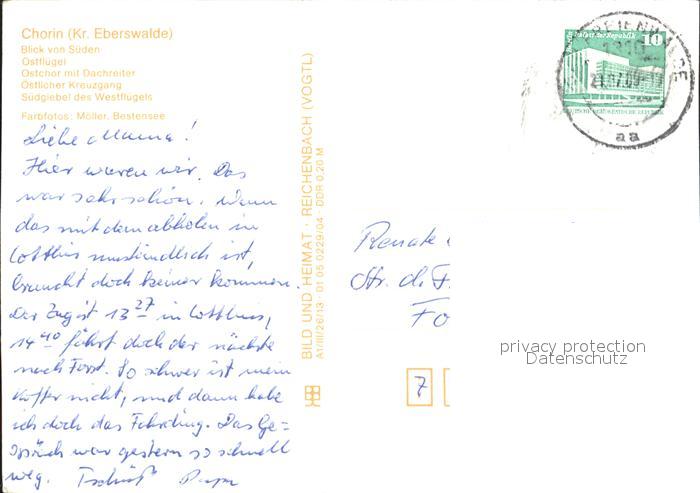 72315071 alte Postkarte Chorin Kloster von Sueden Ostfluegel Ostchor Dachreiter Kreuzgang Suedgiebel postalisch gelaufen Erhaltung siehe scans KatCode: 11110012060045