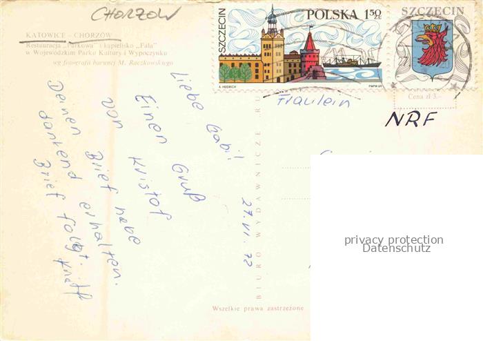 74142633 old postcard Chorzow Koenigshuette Oberschlesien KATOWICE Kattowitz PL Restauracja Parkowa i kapiclisko Fala Wojewodzkim Park Kultury i Wypoczynku postalisch gelaufen Erhaltung siehe scans [FriedD77] KatCode: 11410