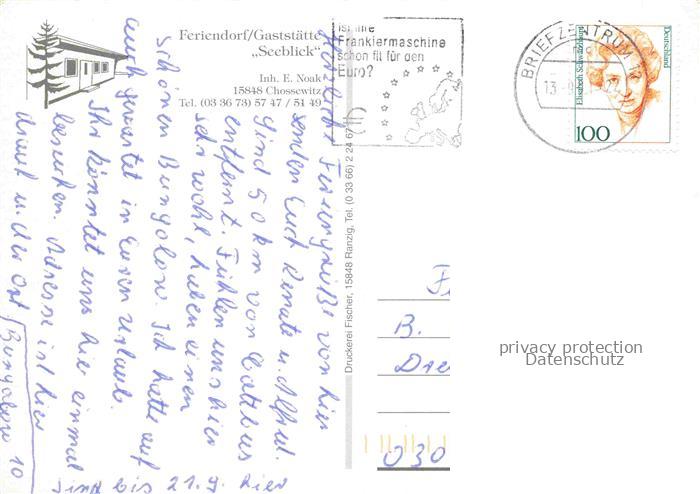 74043676 alte Postkarte Chossewitz Friedland Mark Feriendorf Seeblick Bungalows postalisch gelaufen Erhaltung siehe scans [FriedD77] KatCode: 11110012067137