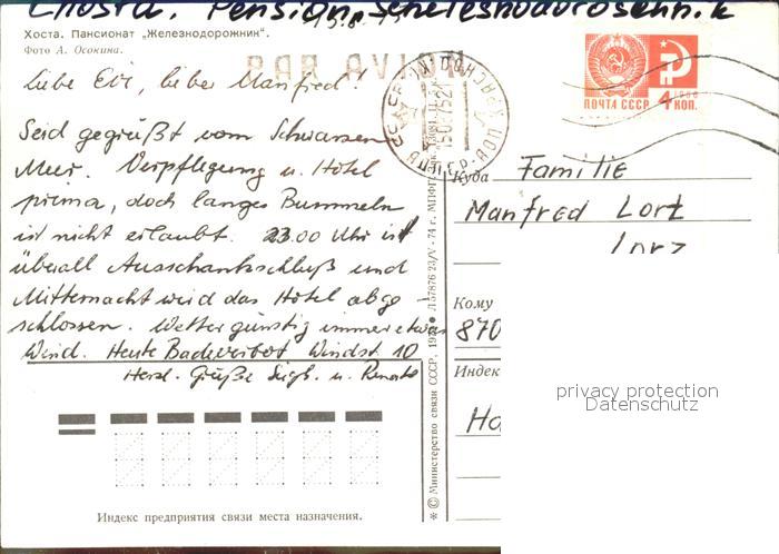 old postcard Chosta Sotschi Pension Schelesnodoroschnik postalisch gelaufen Erhaltung siehe scans