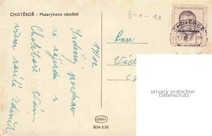74033503 old postcard Chotebor Potiworz CZ Masarykovo namesti postalisch gelaufen Erhaltung siehe scans [WerneD78] KatCode: 11520