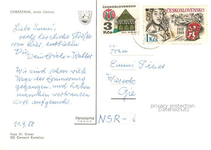13218242 old postcard Chrastava Blick zur Kirche Statuen Platz Siedlung postalisch gelaufen Erhaltung siehe scans [FriedD77] KatCode: 11520