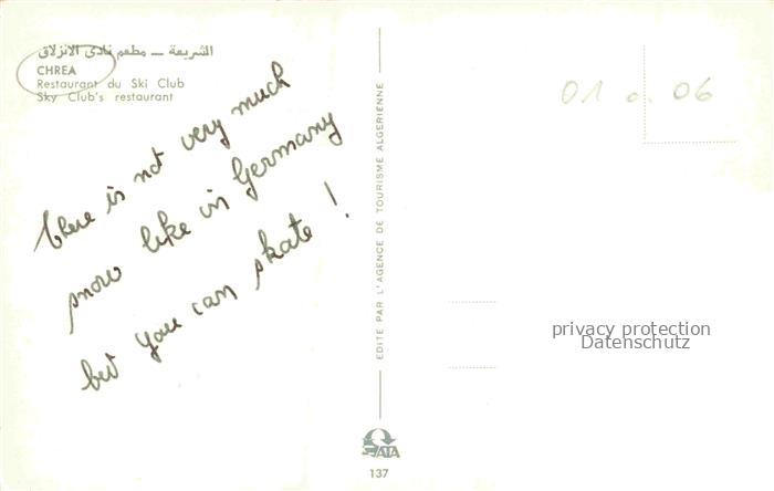74141688 Chrea Atlasgebirge Algerie Restaurant du Ski Club postalisch nicht gelaufen Erhaltung siehe scans [WerneD78] KatCode: 18030