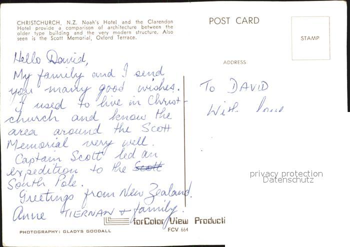 Christchurch Canterbury Hotel Noah postalisch nicht gelaufen Erhaltung siehe scans
