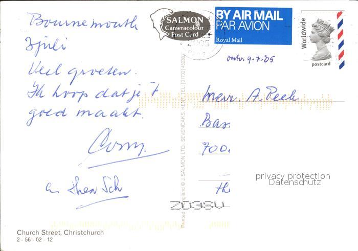 old postcard Christchurch Dorset Church Street postalisch gelaufen Erhaltung siehe scans