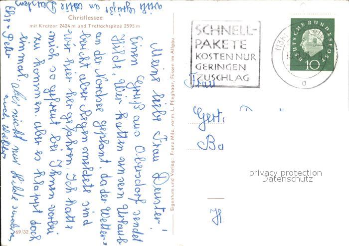 72413987 alte Postkarte Christlessee mit Kratzer und Trettachspitze postalisch gelaufen Erhaltung siehe scans KatCode: 11110009780133