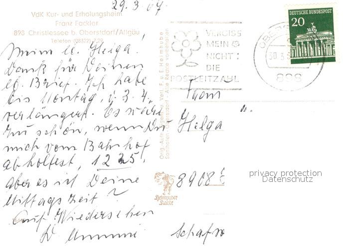 72985731 alte Postkarte Christlessee VdK Erholungsheim Franz Fackler postalisch gelaufen Erhaltung siehe scans [WerneD78] KatCode: 11110009780133
