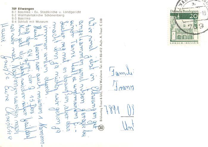 alte Postkarte Chronik-AK 709 Ellwangen Basilika postalisch gelaufen Erhaltung siehe scans [SanaeD93]