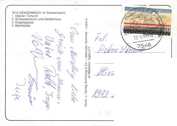 74036089 alte Postkarte Chronik-AK Gengenbach Schwarzwald Marktplarz Engelgasse Torturm postalisch gelaufen Erhaltung siehe scans [IrynaD87] KatCode: 22080000001800