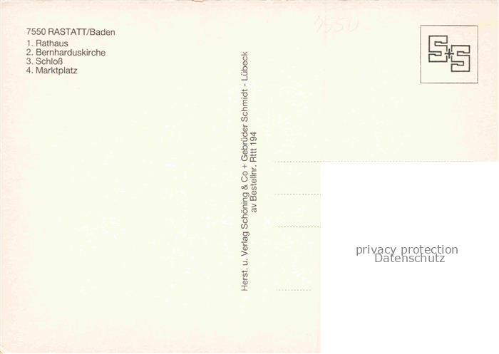 74054659 alte Postkarte Chronik-AK Rastatt Baden Rathaus Schloss postalisch gelaufen Erhaltung siehe scans [SanaeD93] KatCode: 22080000001800