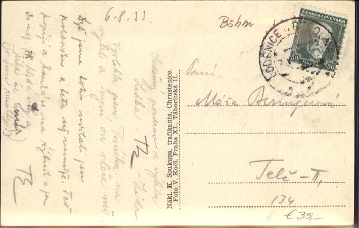old postcard Chrustenice postalisch gelaufen