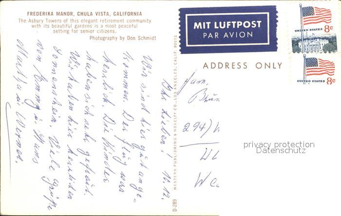 71953369 Chula Vista Frederika Manor postalisch nicht gelaufen Erhaltung siehe scans KatCode: 14140050000000