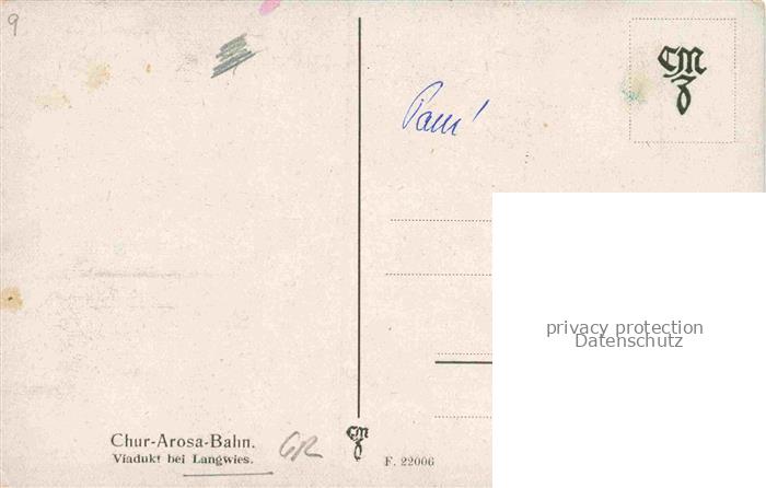 74123948 Chur-Arosa-Bahn Eisenbahn Railway Chemin de Fer Viadukt bei Langwies postalisch nicht gelaufen Erhaltung siehe scans [WerneD78] KatCode: 22040000000300