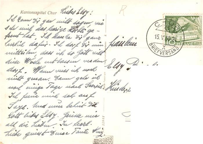 13870691 alte Postkarte Chur GR Kantonsspital Alpen postalisch gelaufen Erhaltung siehe scans [FriedD77] KatCode: 11470100345304