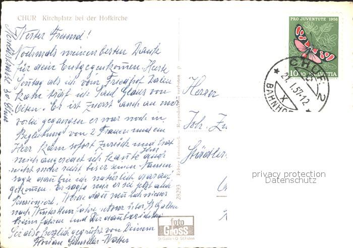 11634057 alte Postkarte Chur GR Kirchplatz bie Hofkirche postalisch gelaufen Erhaltung siehe scans KatCode: 11470100345304