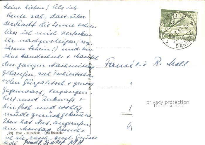 11649824 alte Postkarte Chur GR K?nstlerkarte Kirche postalisch gelaufen Erhaltung siehe scans KatCode: 11470100345304