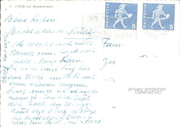 11634066 alte Postkarte Chur GR mit Aroserstrasse postalisch gelaufen KatCode: 11470100345304