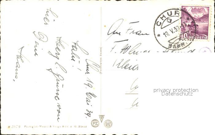 12031678 alte Postkarte Chur GR Teilansicht mit Fontana Denkmal Alpenpanorama postalisch gelaufen Erhaltung siehe scans KatCode: 11470100345304