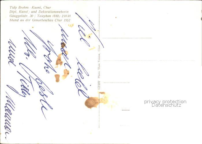 11837104 Chur GR Tidy Brehm Kuoni Dipl. Kust- und Dekorationsweberin postalisch nicht gelaufen Erhaltung siehe scans KatCode: 11470100345304