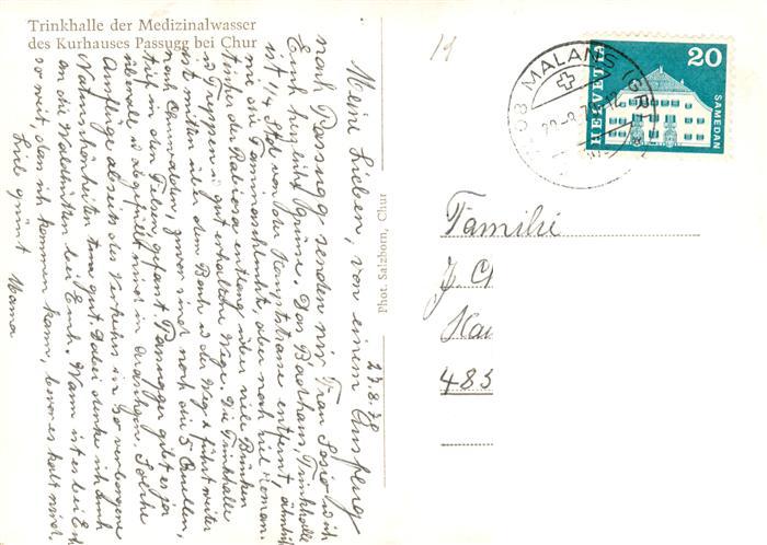 13890023 alte Postkarte Chur GR Trinkhalle der Medizinalwasser des Kurhauses Passugg postalisch gelaufen Erhaltung siehe scans [WerneD78] KatCode: 11470100345304
