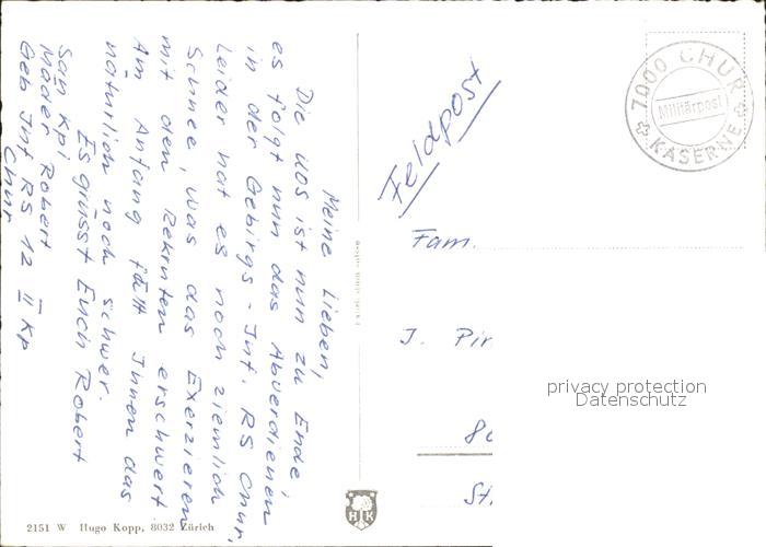 11634052 alte Postkarte Chur GR Truppenunterkunftsgebaeude postalisch gelaufen Feldpost Erhaltung siehe scans KatCode: 11470100345304