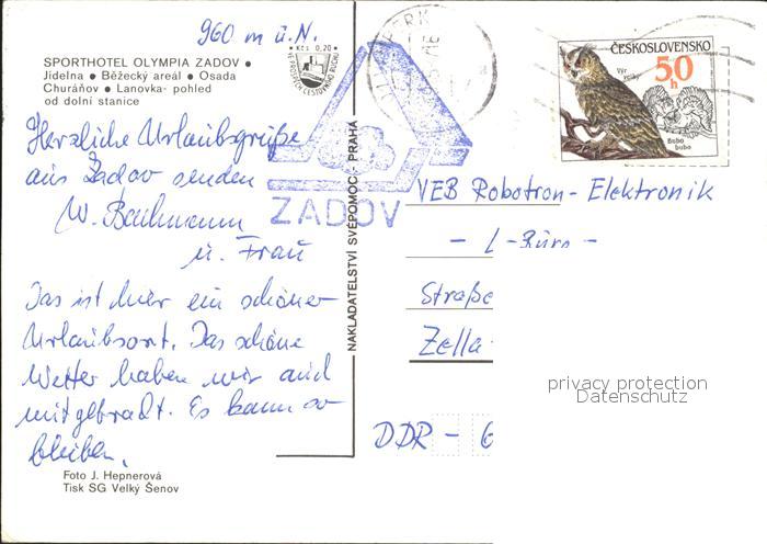 old postcard Churanov Sporthotel Olympia Zadov Jidelna Bezecky areal Osada Churac nov Lanovka pohled od dolni stanice postalisch gelaufen Erhaltung siehe scans