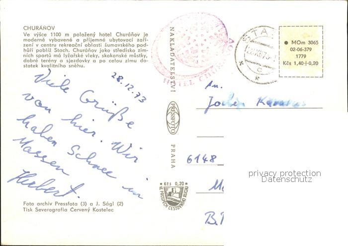 old postcard Churanov Ve vysce polozeny hote Churanov Details postalisch gelaufen Erhaltung siehe scans