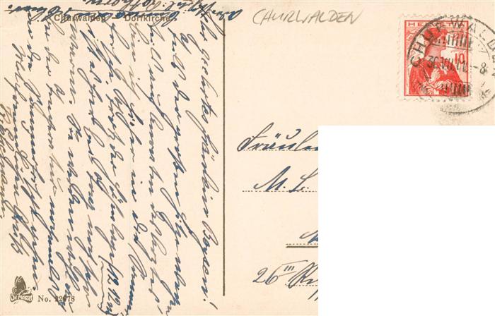 13970501 alte Postkarte Churwalden GR Blick zur Dorfkirche postalisch gelaufen Erhaltung siehe scans [FriedD77] KatCode: 11470100345308