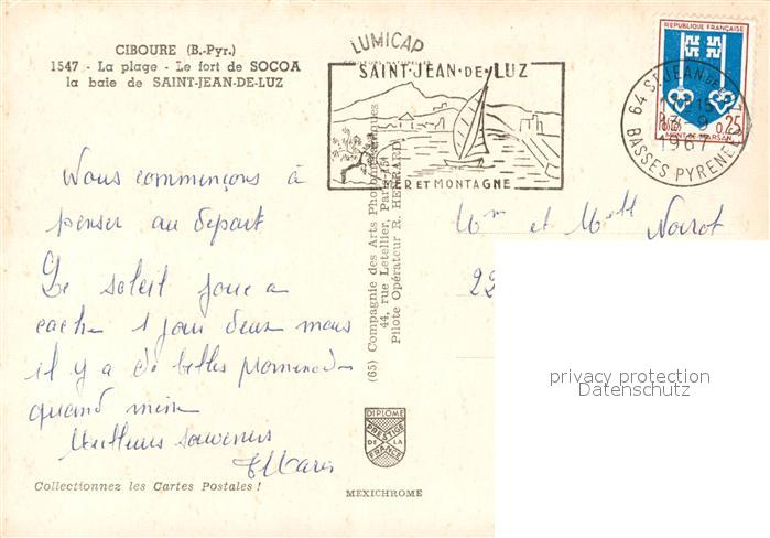 13593284 Ciboure La plage Fort de Socoa Baie de Saint Jean de Luz vue aérienne postalisch gelaufen Erhaltung siehe scans [FriedD77] carte postale Frie Katcode 11170064164189
