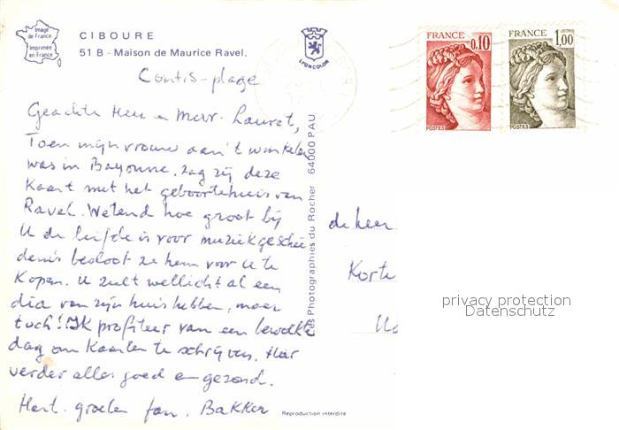 12855102 carte postale Ciboure Maison de Maurice Raval postalisch gelaufen Erhaltung siehe scans [AndreD76] KatCode: 11170064164189