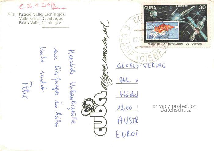 74096718 old postcard Cienfuegos Cuba Palais Valle postalisch gelaufen Erhaltung siehe scans [IrynaD87] KatCode: 16160