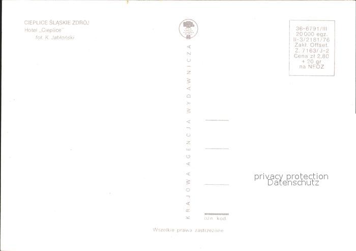 Cieplice Slaskie Zdroj Hotel Cieplice postalisch nicht gelaufen Erhaltung siehe scans