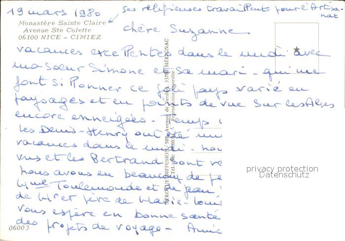 11860488 Cimiez Monastere Sainte Claire postalisch nicht gelaufen Erhaltung siehe scans KatCode: 11170006206088