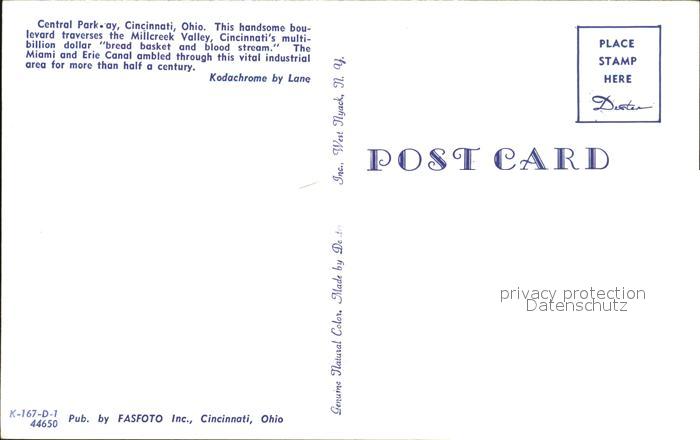 72444361 Cincinnati Ohio Central Parkway Boulevard postalisch nicht gelaufen Erhaltung siehe scans KatCode: 14140370000000