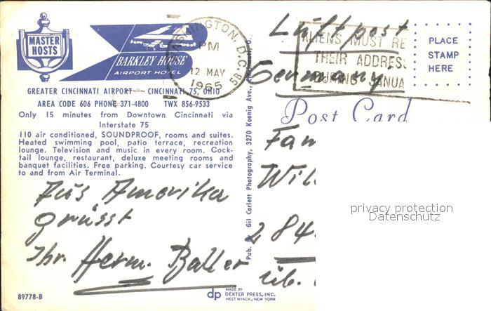 71953232 old postcard Cincinnati Ohio Hotel Barkley House postalisch gelaufen Erhaltung siehe scans KatCode: 14140370000000