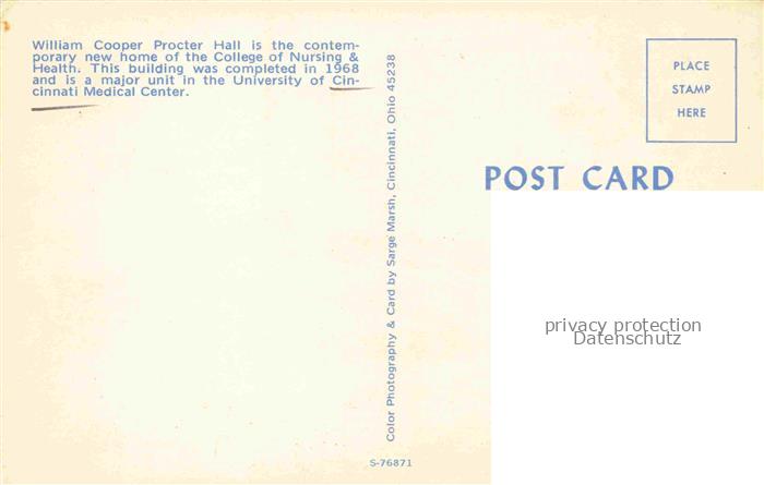 74023002 Cincinnati Ohio William Cooper Procter Hall University of Cincinnati Medical Center postalisch nicht gelaufen Erhaltung siehe scans [FriedD77] KatCode: 14140370000000