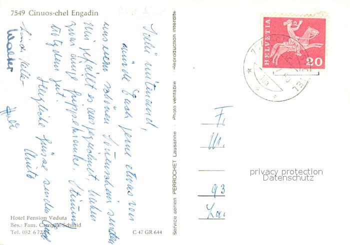 13709618 alte Postkarte Cinuos-chel GR Hotel Pension Veduta Fliegeraufnahme postalisch gelaufen Erhaltung siehe scans [WerneD78] KatCode: 11470100335226