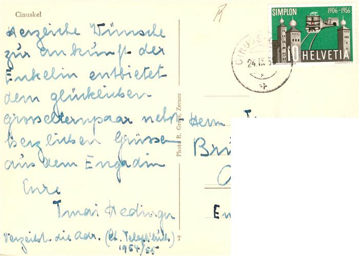 13871838 alte Postkarte Cinuskel S-chanf GR Dorfpartie an der Kirche postalisch gelaufen Erhaltung siehe scans [FriedD77] KatCode: 11470100335224