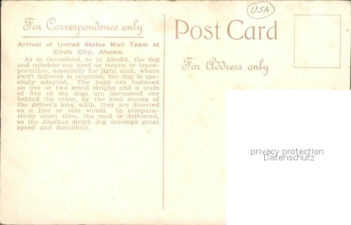 31735446 Circle Alaska Arrival of US Mail Team Hundeschlitten postalisch nicht gelaufen Erhaltung siehe scans KatCode: 14140020000000