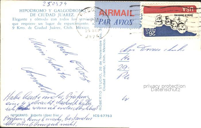 old postcard Ciudad Juarez Hipodromo Galgodromo postalisch gelaufen Erhaltung siehe scans